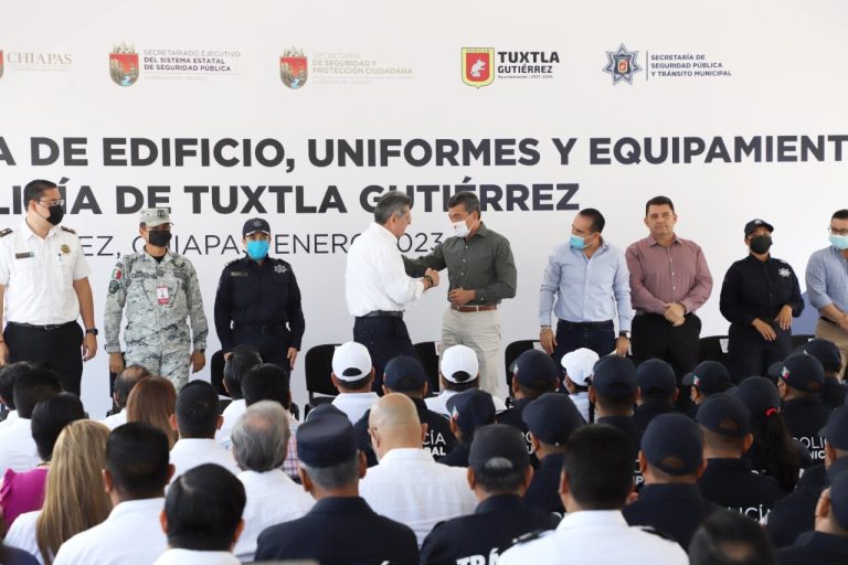 Con motivo a la conmemoración del “Día del Policía” y en seguimiento al fortalecimiento y equipamiento a los policías en Tuxtla Gutiérrez, el gobernador de Chiapas, Rutilio Escandón Cadenas y el alcalde Carlos Morales Vázquez, inauguraron el edificio de la Secretaría de Seguridad Pública y Tránsito Municipal, en donde además entregaron uniformes y equipamiento a los elementos, todo con una inversión superior a los 36 millones 922 mil pesos.