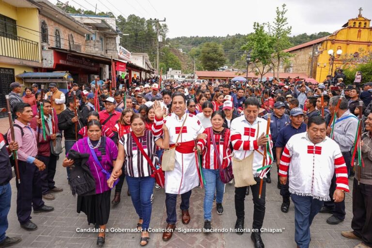 Oxchuc, Chis.-El candidato al gobierno de Chiapas, por la coalición “Sigamos Haciendo Historia en Chiapas”, Eduardo Ramírez Aguilar, visitó los municipios de Oxchuc y Huixtán en donde se comprometió a trabajar por los derechos de las mujeres, el desarrollo y la paz entre los pueblos.