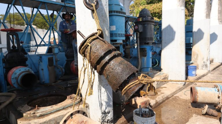 Como parte de estas acciones, el personal del Organismo realizó la instalación y sustitución de dos cuerpos de tazones en dos equipos de bombeo existentes; los cuerpos de tazones, son estructuras de acero que forman parte de los equipos, y permitirán incrementar la capacidad de captación de agua cruda, proveniente del Río Santo Domingo; tras la reparación, la capacidad de captación de cada equipo reparado y rehabilitado llegará a 200 litros de agua cruda por segundo.