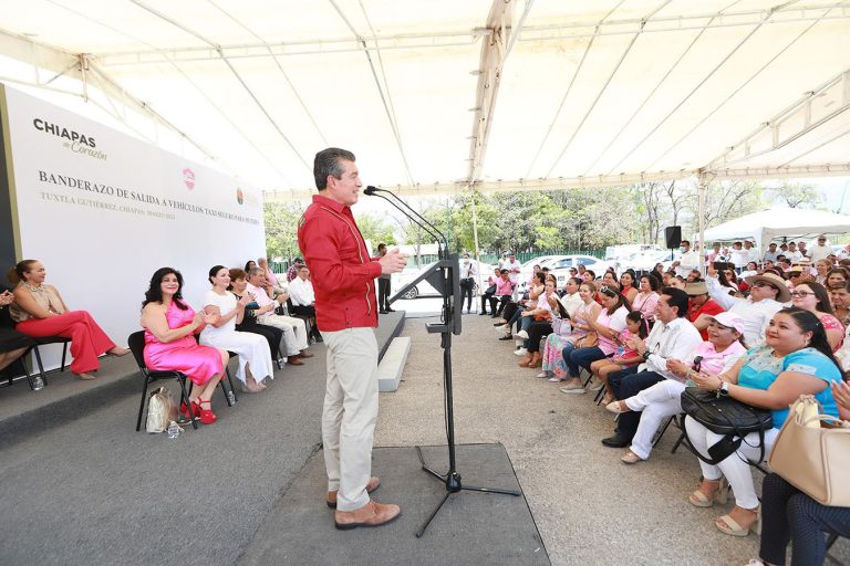 El gobernador Rutilio Escandón Cadenas dio el banderazo de salida a los Taxis Seguros para Mujeres que, a través de 232 vehículos con registro oficial, regulados y que serán manejados por mujeres, brindarán servicio de transporte público de calidad, para mayor tranquilidad de las usuarias en la capital chiapaneca.