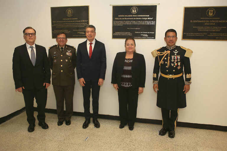 “Es un honor develar las letras doradas del Heroico Colegio Militar. Agradecemos a las y los diputados porque esta distinción enaltece la historia y el recorrido a favor de México, de esta institución educativa que ha sido semillero de muchas generaciones de soldados, de quienes nos sentimos orgullosos. Mi compromiso es seguir al lado de todas las instituciones y de nuestras fuerzas armadas. ¡Viva el Heroico Colegio Militar! ¡Vivan las y los soldados egresados del Heroico Colegio Militar! ¡Viva Chiapas! ¡Viva México!”, expresó.