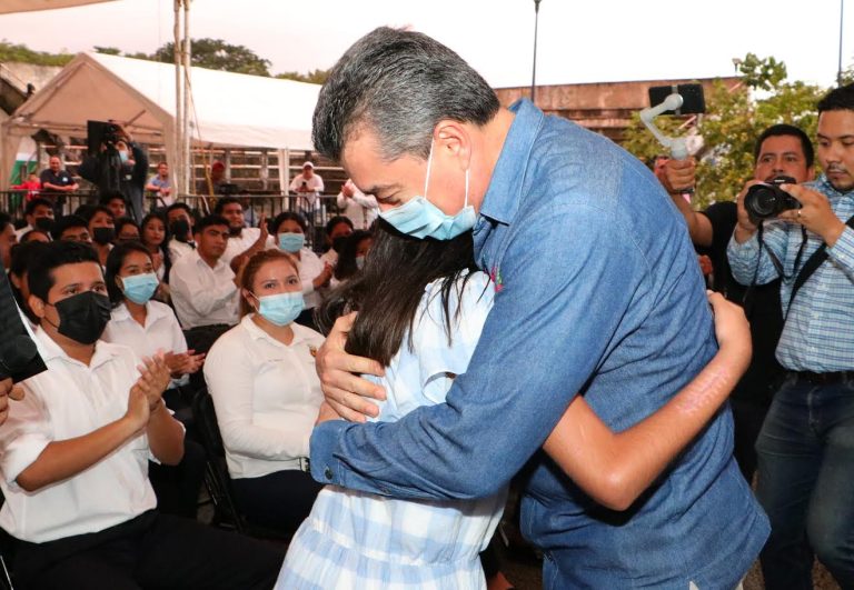 El gobernador, Rutilio Escandón, quedó totalmente anonadado y no pudo más y bajó del pódium a abrazarla.