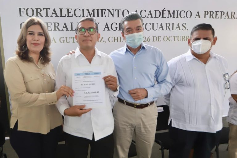El gobernador Rutilio Escandón Cadenas entregó recursos por 50 millones de pesos, para el fortalecimiento académico de preparatorias generales y agropecuarias, un apoyo que nunca se había dado y nace de la buena administración, ahorros y economías del gasto público en el Gobierno del Estado, para impulsar proyectos que abonen en la formación de la juventud chiapaneca.