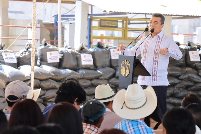 RUTILIO Escandón entrega bolsas de silo de maíz a productoras y productores pecuarios de Berriozábal