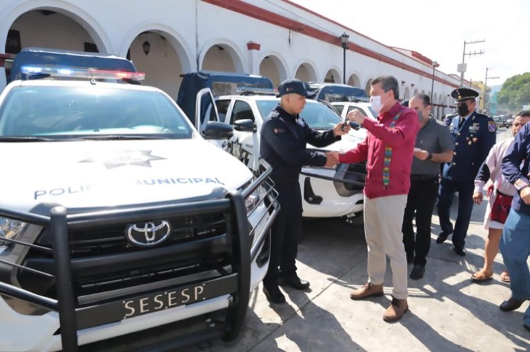 · El gobernador benefició con equipo táctico, uniformes, patrullas y becas de capacitación a policías de Chiapa de Corzo, Socoltenango, Chalchihuitán, Venustiano Carranza y Acala
