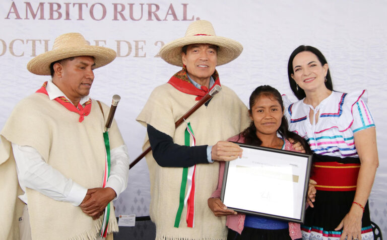 En representación de las beneficiadas con Título de Propiedad y Derecho a la Tierra, Ofelia Velazco Entzin agradeció a las autoridades por tomar en cuenta a las mujeres originarias y brindarles este documento: “Me siento agradecida por recibir este título. Para nosotras representa la oportunidad de salir adelante y mejorar nuestra calidad de vida y la de nuestras familias”.