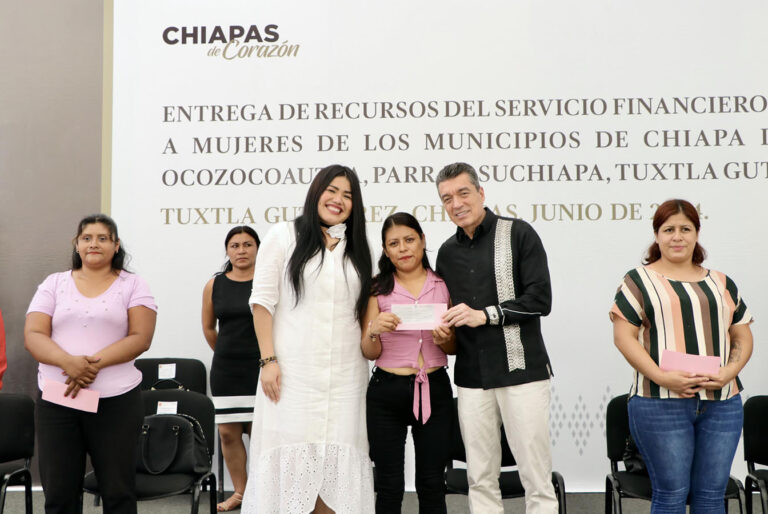 El gobernador Rutilio Escandón Cadenas encabezó la entrega de recursos del servicio financiero “Semillas de Autonomía” a mujeres de los municipios de Chiapa de Corzo, Berriozábal, Ocozocoautla, El Parral, Suchiapa, Villa Corzo y Tuxtla Gutiérrez, donde destacó que el objetivo es respaldar las iniciativas, la creatividad, el emprendedurismo y potencializar la autonomía económica de las chiapanecas.