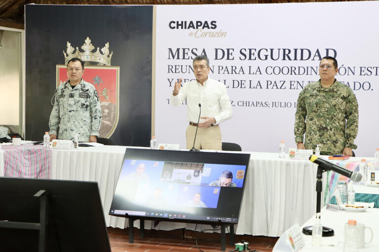 “Estamos todas las autoridades, el Ejército Mexicano, la Marina, Guardia Nacional, las corporaciones federales, estatales y municipales de seguridad y de protección civil, con el respaldo ciudadano a través de los Comités Comunitarios de Protección Civil, para proteger el patrimonio, la integridad y la vida de las familias chiapanecas ante la temporada de ciclones y huracanes”, apuntó.