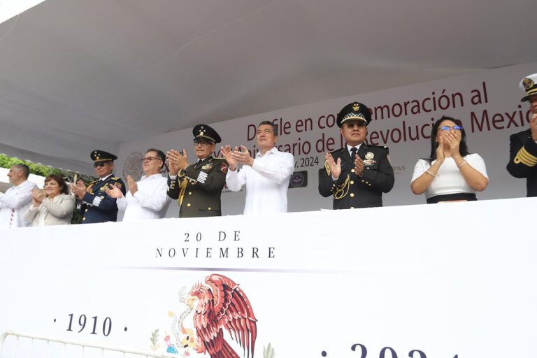 El gobernador Rutilio Escandón Cadenas estuvo presente en el desfile cívico en conmemoración del 114 Aniversario del inicio de la Revolución Mexicana, en el que participaron contingentes conformados por integrantes de las fuerzas armadas e instituciones públicas de seguridad, educativas y civiles.