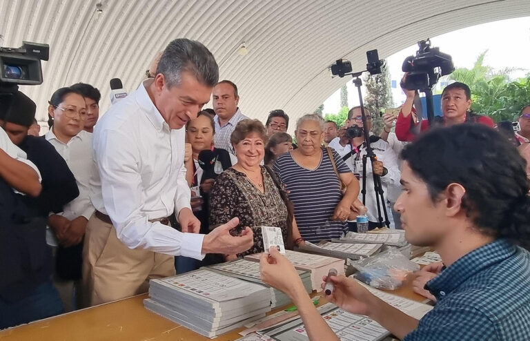 En entrevista con medios de comunicación, el gobernador reconoció al Instituto Nacional Electoral (INE) y al Instituto de Elecciones y Participación Ciudadana del Estado de Chiapas (IEPC) por el gran trabajo realizado para que la ciudadanía chiapaneca ejerza su voto de manera pacífica, tranquila, en paz y civilidad.