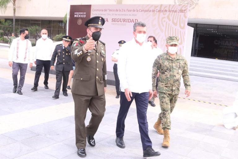 “Invitamos a las chiapanecas y los chiapanecos a que entreguen sus armas; estamos convencidos de que no se necesitan para sentirnos seguros; se requieren comunidades que vivan unidas y felices, donde todas y todos construyamos espacios de paz”, finalizó.
