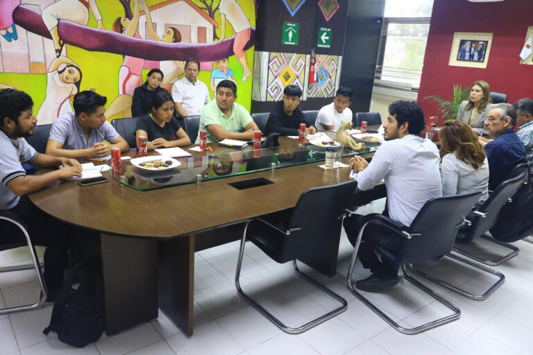 Tuxtla Gutiérrez .- La secretaria de Educación en Chiapas, Rosa Aidé Domínguez Ochoa, recibió en sus oficinas a una comisión de estudiantes de la Escuela Normal Indígena Intercultural Bilingüe “Jacinto Canek”, con sede en el municipio de Zinacantán, con quienes sostuvo un respetuoso y cordial diálogo sobre las diversas inquietudes respecto a la mejoría en las instalaciones y servicios de esta casa de estudios.