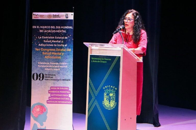 Tuxtla Gutiérrez, Chis., 09 OCT.-La Secretaría de Salud del Gobierno de Chiapas y la Universidad de Ciencias y Artes de Chiapas (UNICACH), realizaron el Primer Congreso de Salud Mental y Adicciones, bajo el lema: “Empoderar, conectar, cuidar: fortaleciendo la salud mental infantil y juvenil”. Esta colaboración entre instituciones, busca promover una sociedad más humana, empática y solidaria.