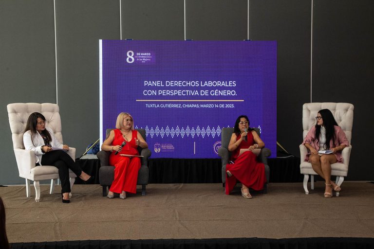 El secretario de Economía y del Trabajo (SEyT), Carlos Salazar, externó su reconocimiento por el liderazgo femenino y la defensa de los derechos de las mujeres, a la secretaria de Igualdad de Género, María Mandiola Totoricaguena y a la coordinadora estatal de las Unidades de Igualdad de Género, Norbi Verónica Pérez López, quien asistió en representación de la secretaria a la inauguración del Panel “Derechos Laborales con Perspectiva de Género”.