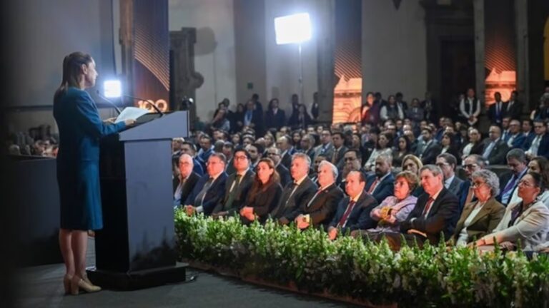 Agregó que “el financiamiento debe dejar de ser un privilegio y convertirse en un motor del desarrollo incluyente”, ya que un país con baja inflación, pero sin crédito suficiente se queda corto en su potencial de crecimiento y México es, entre las principales economías de América Latina y del mundo, de los países que menos crédito otorga con relación a su Producto Interno Bruto (PIB). Resaltó acciones integrales como el Plan México, que impulsó desde el inicio de su administración, para producir más de lo que se consume en el país y fortalecer el mercado interno, con apoyo del Banco de México para mantener la estabilidad macroeconómica y una mayor inversión pública y privada.