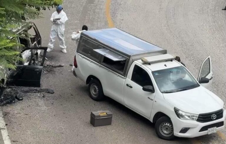 Poco después de realizar los peritajes, arribó el personal del SEMEFO para recoger los restos de la víctima y llevarse la camioneta incinerada para continuar las investigaciones del caso para dar los posibles responsables del caso.