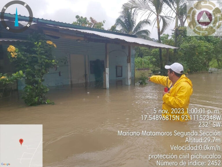 De manera preliminar se informa que en Pichucalco se registró inundaciones en 71 viviendas ubicadas en los ejidos Emiliano Zapata, El Zoque, Ranchería el Platanar, Col. Mariano Matamoros 2° Sección, así como el daño a un puente.
