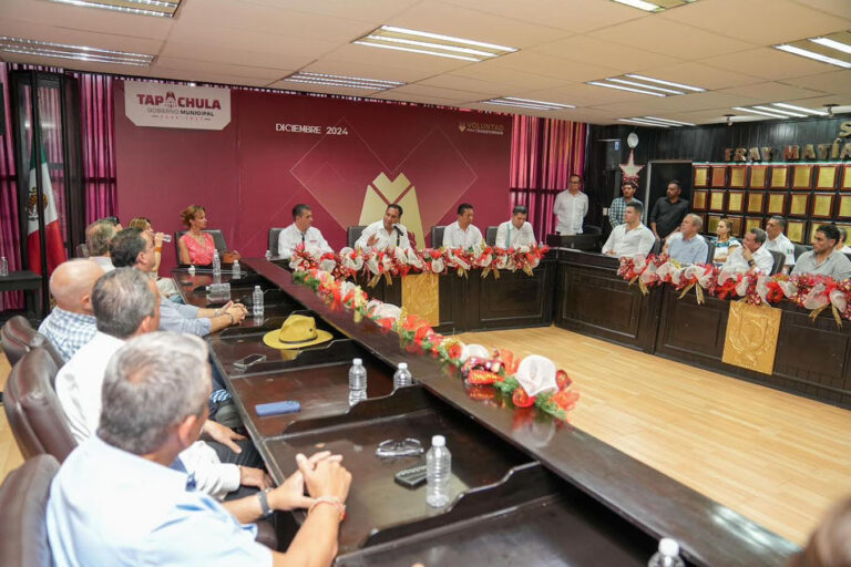 «Quería tener esta reunión para poner a disposición de ustedes el Gabinete de Seguridad. Me duele mucho que Tapachula esté en primer lugar nacional en percepción de inseguridad, estoy empeñado en revertirlo. Las patrullas no van a estar paradas sino haciendo rondines, y todas las autoridades estaremos coordinadas con la Fuerza de Reacción Inmediata Pakal para tener presencia en los lugares con mayor incidencia», expresó.