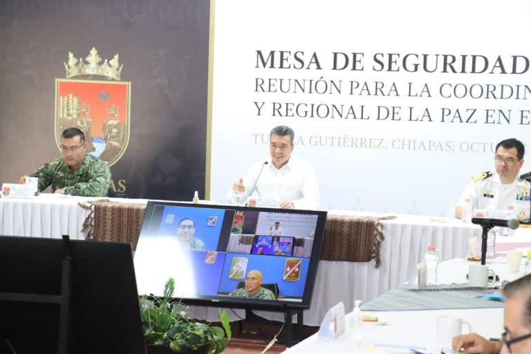 En su intervención, el mandatario estatal exhortó a representantes de la Guardia Nacional (GN), Secretaría de Marina (Semar), Secretaría de la Defensa Nacional (Sedena), Fiscalía General de la República (FGR), Fiscalía General del Estado (FGE), Protección Civil y Policías Municipales, a continuar redoblando esfuerzos en las acciones y estrategias enfocadas en proteger la integridad y el patrimonio de las y los chiapanecos.
