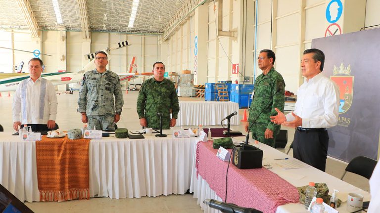 Participaron de manera virtual, los comandantes de la XVI Región Naval, Puerto Chiapas, Fernando Alfonso Angil Rodríguez; de la 36 Zona Militar, Tapachula, José Joaquín Jiménez Cueto; y de la 39 Zona Militar, Ocosingo, Javier González Jiménez.