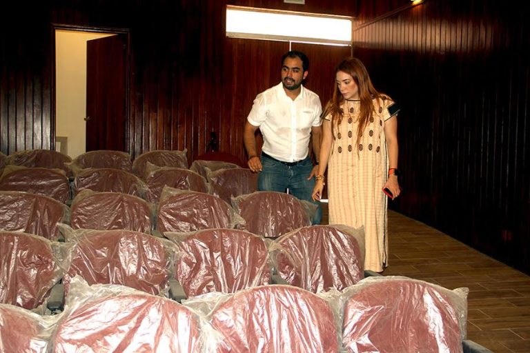 Mientras que en el escenario, “hay 120 butacas con pupitre, de las más modernas que existen en el mercado; además de un sistema de audio marca JBL, que nos permite tener un sonido ambiental y de calidad, pero sobre todo con la garantía de durabilidad, así como dos micrófonos inalámbricos y una consola, con mezclador de luces, y así poder llevar a cabo distintas actividades; en el escenario también se cuenta con tres muros curvos, que servirán como mamparas.