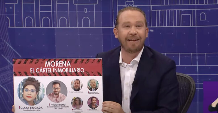El candidato también afirmó que el “Cártel Inmobiliario” de Morena está integrado por funcionarios como Clara Brugada, candidata en la Ciudad de México, y Víctor Romo, el coordinador de su campaña; José Ramón López Beltrán, hijo del presidente; Manuel Bartlett, titular de la Comisión Federal de Electricidad (CFE).