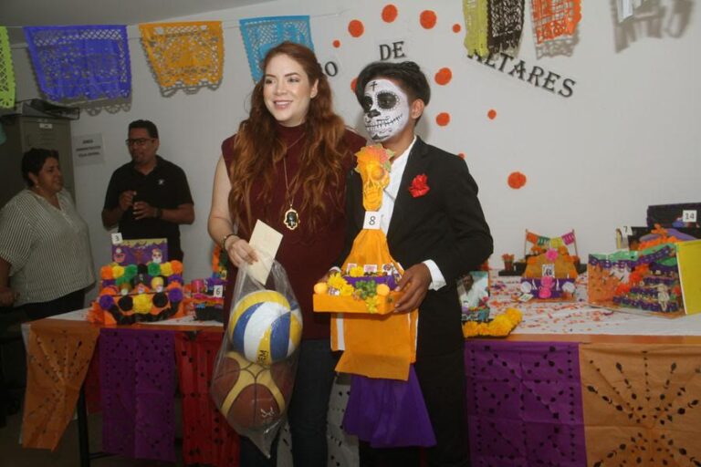 En el marco de las festividades del Día de Muertos, la Telesecundaria 1451 “Dr. Manuel Velasco Suárez”, del Instituto del Deporte, organizó un concurso de altares donde las y los estudiantes realizaron como proyecto académico una ofrendas alusivas a estas fechas, las cuales fueron a tamaño escala y donde al final la directora general, Tania Robles Velázquez realizó la premiación correspondiente.