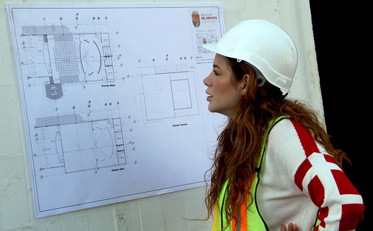 La titular del Indeporte, acompañada del arquitecto Horacio Rafael de Coss, responsable de la obra, realizó un recorrido por las instalaciones en rehabilitación, las cuales comenzaron al inicio de esta misma semana y que de acuerdo a lo programado deberán concluir en el mes de junio.