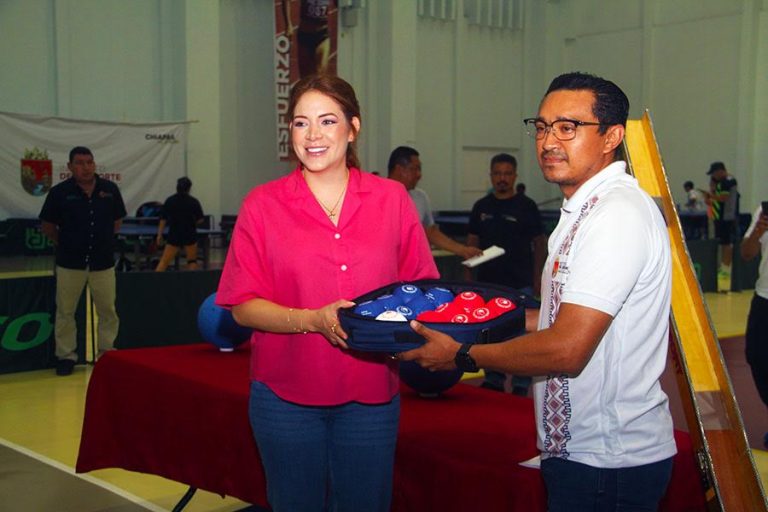 La entrega de material deportivo se realizó en el gimnasio de usos múltiples “Chiapas de Corazón”, del Indeporte, para la cual la titular se reunió con las y los atletas de las diciplinas de Boccia y Golbol, acompañados de entrenadores y padres de familia, a quienes hizo entrega de material deportivo consistente en set de pelotas de boccia y canaletas de competición, así como balones sonoros de golbol.