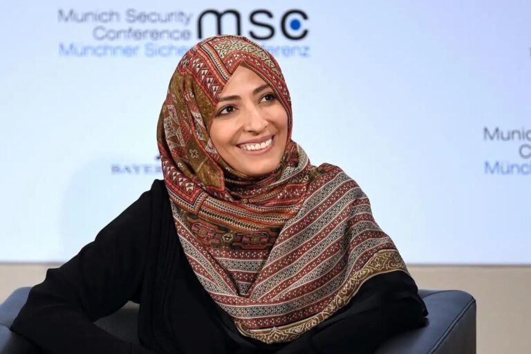 Tawakkul Karman, conocida en Yemen como ‘La Madre de la Revolución’, salió de la Cumbre que se realiza en Monterrey al llegar los manifestantes con pancartas y expresando su rechazo a la reforma de AMLO.