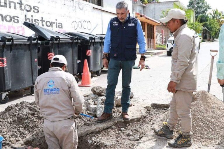 En atención a un reporte ciudadano, el presidente municipal de Tuxtla Gutiérrez, Angel Torres, supervisó los trabajos de reparación de una fuga de agua potable que realiza el personal del Sistema Municipal de Agua Potable y Alcantarillado (SMAPA), en una toma domiciliaria, en la Avenida México esquina con Calle Tlaxcala, en colonia Las Granjas.