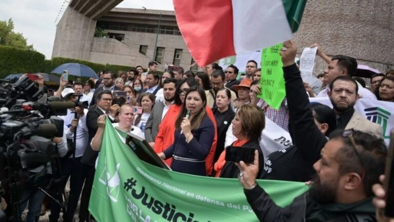 “La suspensión de labores como última medida la emplearíamos como único propósito de que la reforma sea integral y producto del máximo consenso de las mayorías legislativas y los demás sectores sociales”, dijo la jueza Juana Fuentes Velázquez, directora nacional de la Jufed, en una conferencia afuera del Congreso de la Unión.