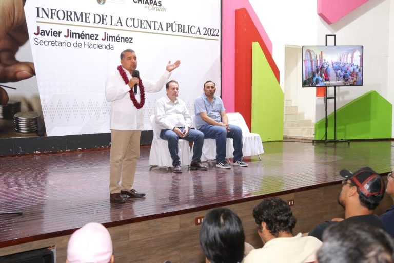 Villaflores, Chiapas; 6 de julio de 2023.- En un ejercicio de rendición de cuentas inédito en el Gobierno Estatal, el secretario de Hacienda, Javier Jiménez Jiménez, acudió al municipio de Villaflores con el objetivo de presentar el informe de la Cuenta Pública, a fin de que la población sepa lo que se hace con el dinero de todas y todos, para brindar bienestar.
