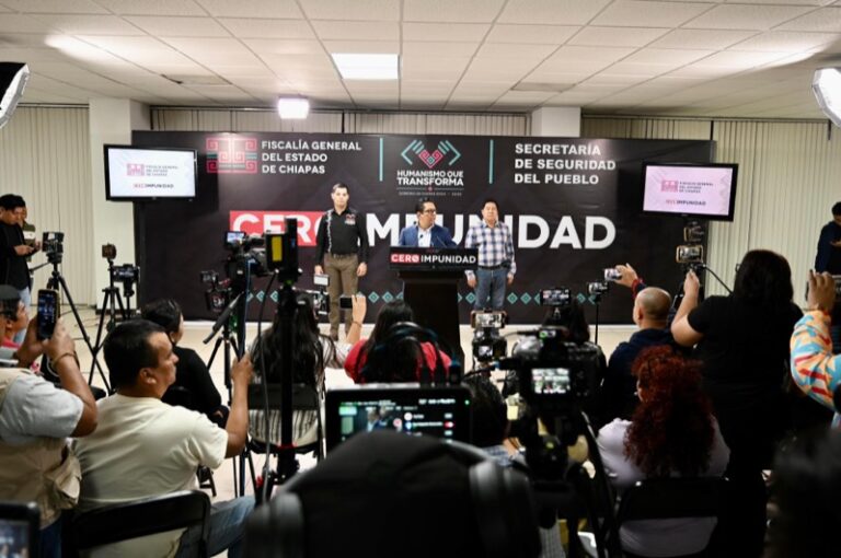 En conferencia de prensa, el Fiscal General del Estado, Jorge Luis Llaven Abarca y el Secretario de Seguridad del Pueblo, Óscar Alberto Aparicio Avendaño, informaron sobre las acciones que se han realizado en los últimos días para garantizar la seguridad y el estado de derecho en Chiapas.