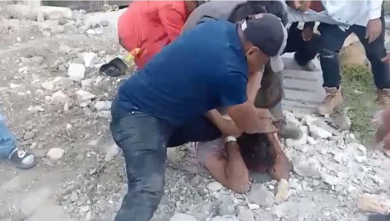 Las imágenes difundidas en redes sociales muestran al joven turista golpeado y con el rostro sangrado, amarrado, mientras su vehículo aparece severamente dañado. A pesar de la presencia de numerosos testigos, nadie pudo intervenir para detener la agresión, limitándose a observar impotentes la situación.