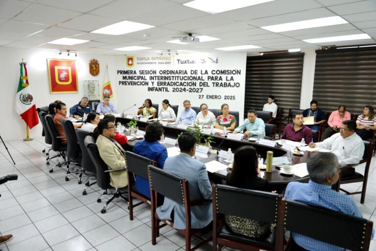 Tuxtla Gutiérrez, Chiapas – En el marco de la Primera Sesión Ordinaria de la Comisión Municipal Interinstitucional para la Prevención y Erradicación del Trabajo Infantil, el Ayuntamiento de Tuxtla Gutiérrez reafirmó su compromiso con la protección de los derechos de niñas, niños y adolescentes.