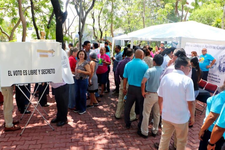 La rectora de la UNICACH, Fanny López Jiménez, emitió su voto en las instalaciones de la Rectoría Bicentenario, donde también participaron docentes y personal administrativo. Asimismo, se registró una alta participación en las mesas de votación instaladas en Ciudad Universitaria y el Campus Universitario.