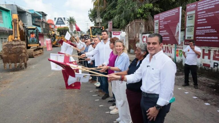 Yamil Melgar da banderazo de inicio a la pavimentación hidráulica de calles en Barrio Nuevo