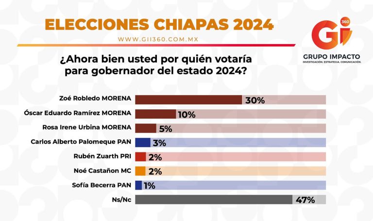 La encuesta GI 360, del Grupo Impacto, confirma también que MORENA sigue en la cúspide de las de preferencias partidistas con un 47%; Zoé Robledo destaca por trabajo, resultados, arraigo en Chiapas y cercanía con el Presidente